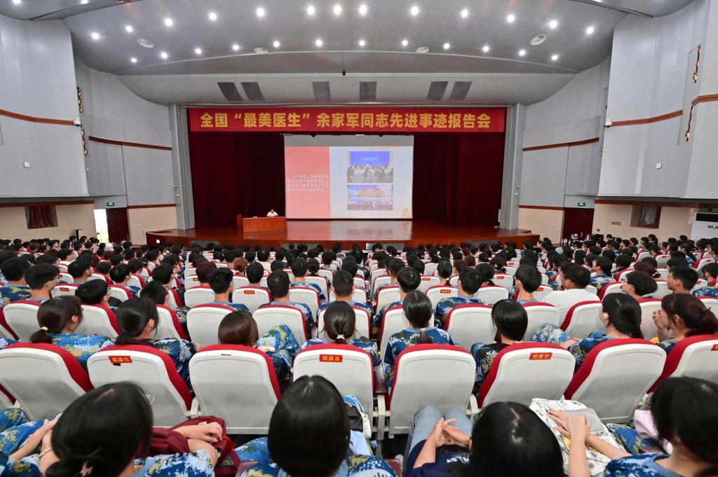 9月11日下昼,,,,,,天下“最美医生”余家军同志先进事迹报告会在我校举行。。。。。。。我校600余名学生在主会场加入,,,,,,安徽卫生康健职业学院等10所高校墟落医生定向委托作育学生在分会场以视频聚会形式加入。。。。。。。