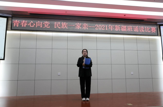 在诵读角逐中,,,,,,新疆班的同砚们精神饱满、得体大方。。。。。他们的朗诵铿锵有力,,,,,,表达着对党和祖国满腔的热爱;;;;;;他们的眼神清亮明亮,,,,,,饱含着对中国共产党真挚的赞颂和发自肺腑的谢谢;;;;;;他们神情专注,,,,,,似乎穿越历史的长河,,,,,,回望悠长的岁月,,,,,,又一次眼见了这百年的负重前行与绚烂绚烂。。。。。同砚们用稚嫩而又坚定的声音深情解读什么是“中国实力”,,,,,,以高昂的激情,,,,,,表达了深深的爱国情怀。。。。。