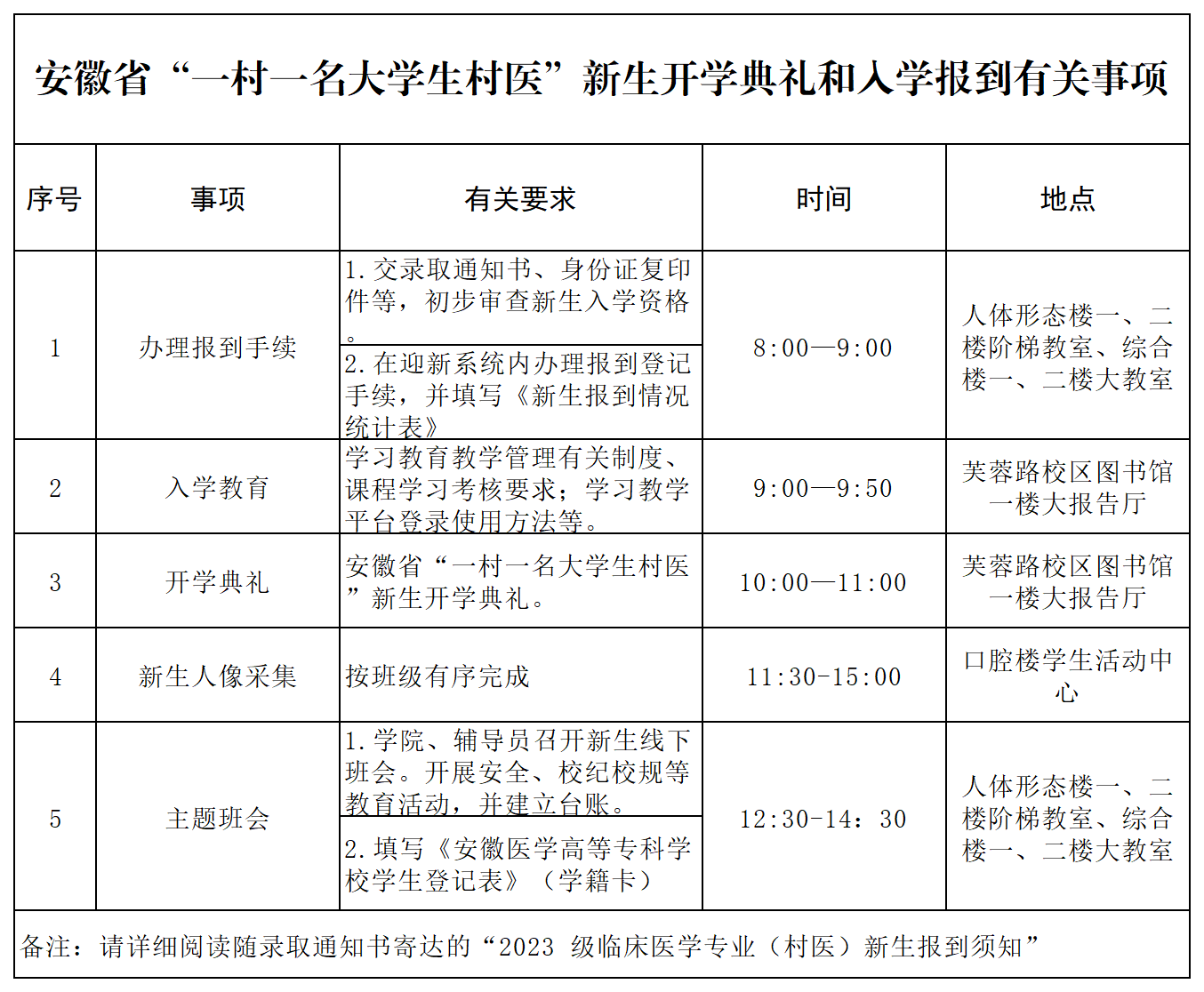 经研究,,,,,,,决议我校2023级“一村一名大学生村医”提升妄想全体学生(简称临床医学专业(村医))将于2023年11月19日开学,,,,,,,有关报到事宜通知如下: