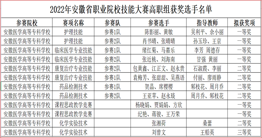 ¿ËÈÕ£¬£¬£¬£¬£¬£¬°²»ÕÊ¡½ÌÓýÌü¡¢°²»ÕÊ¡¾­¼ÃºÍÐÅÏ¢»¯Ìü¡¢°²»ÕÊ¡ÈËÁ¦×ÊÔ´ºÍÉç»á°ü¹ÜÌüÐû²¼ÁË2022-2023Äê¶È°²»ÕʡְҵԺУÊÖÒÕ´óÈü»ñ½±Ãûµ¥¡£ ¡£¡£¡£¡£¡£¡£ÎÒУʦÉúÔÙ´´¼Ñ¼¨£¬£¬£¬£¬£¬£¬¹²»ñµÃ12¸ö½±Ï£¬£¬£¬£¬£¬Î÷ϯ²ÎÈü¶Ó»ñ¿Î³Ì˼Õþ½Ìѧ¾ºÈüÒ»µÈ½±2Ï£¬£¬£¬£¬£¬Ñ§Éú²ÎÈü¶Ó»ñÒ»µÈ½±4Ïî¡¢¶þµÈ½±5Ïî¡¢ÈýµÈ½±1Ï£¬£¬£¬£¬£¬»ñ½±ÊýÄ¿ÓëÖÊÁ¿¾ù´´Àúʷиߡ£ ¡£¡£¡£¡£¡£¡£Ñ§Éú²ÎÈü¶Ó¡°Õչ˻¤Ê¿ÊÖÒÕ¡±¡¢¡°ÁÙ´²Ò½Ñ§×¨ÒµÊÖÒÕ¡±¡¢¡°¿µ¸´ÖÎÁÆ×¨ÒµÊÖÒÕ¡±¡¢¡°Ò©Æ·¼ì²âÊÖÒÕ¡±4¸öÈüÏîÀÖ³ÉÈëΧ¹úÈü¼¯Ñµ¶Ó¡£ ¡£¡£¡£¡£¡£¡£