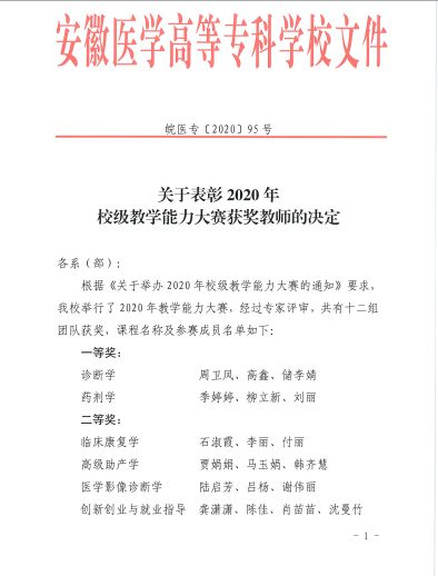 关于表扬2020年校级教学能力大赛获奖西席的决议